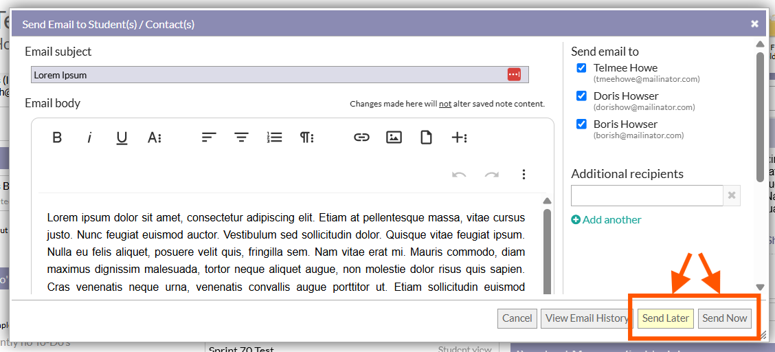 - Select to whom you would like to email the note (remember, you can include multiple recipients)