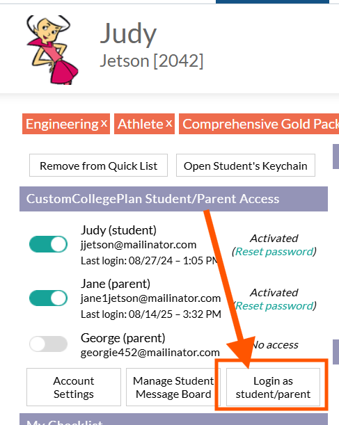 - To do so, head to your student's profile and log in as them