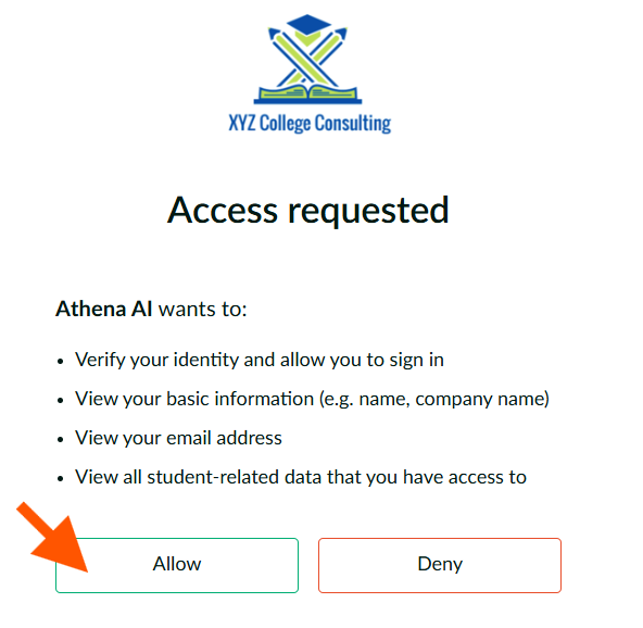 - Authorize the connection between Athena AI and CollegePlannerPro